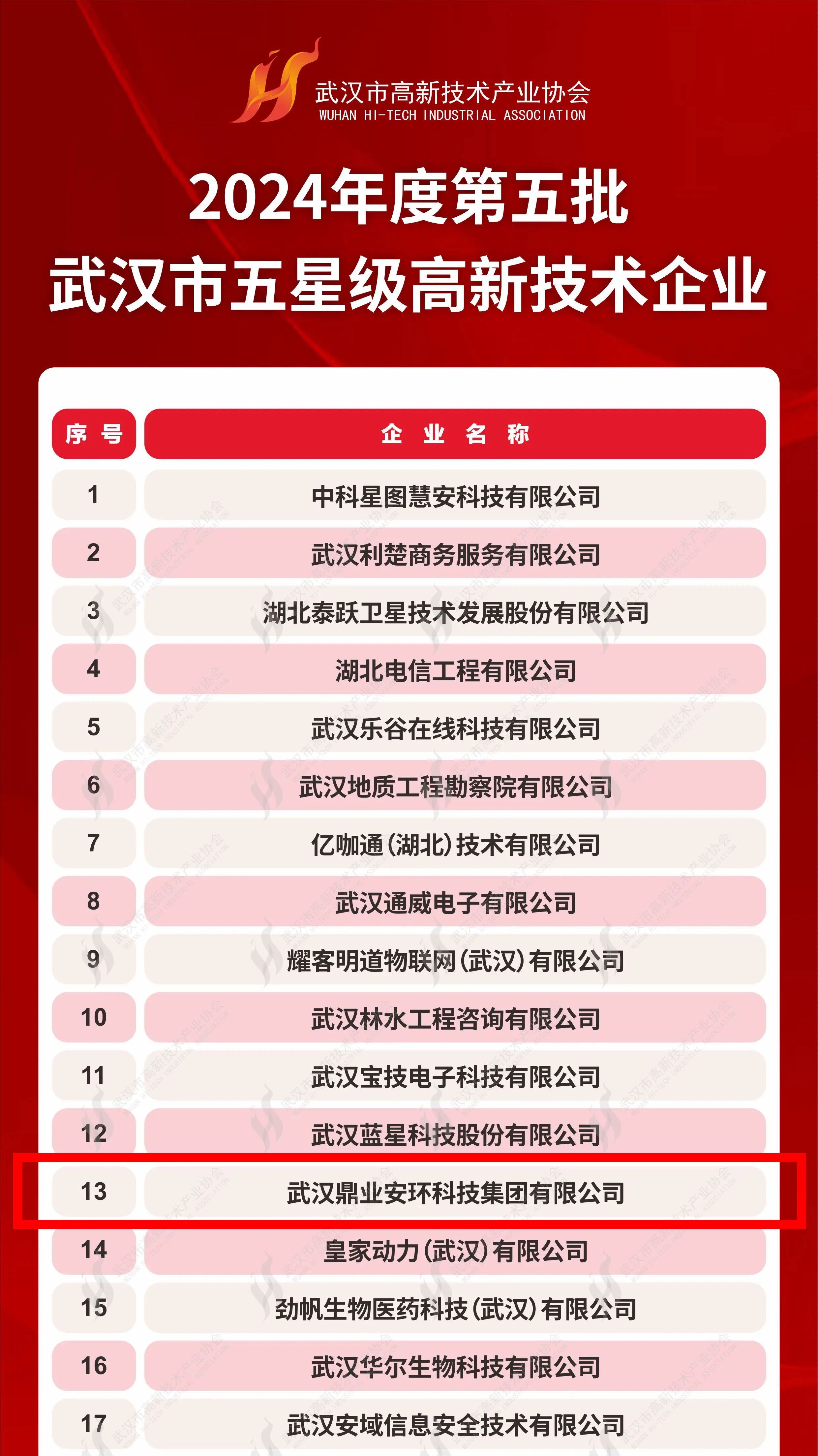 近日,為進(jìn)一步提升武漢市高新技術(shù)企業(yè)品牌形象,增強(qiáng)企業(yè)市場(chǎng)競(jìng)爭(zhēng)力,相關(guān)協(xié)會(huì)本著企業(yè)自愿參加、協(xié)會(huì)免費(fèi)服務(wù)的原則,依據(jù)《武漢市高新技術(shù)企業(yè)創(chuàng)新能力評(píng)價(jià)標(biāo)準(zhǔn)》T/WHGX 001-2023 團(tuán)體標(biāo)準(zhǔn),從科研能力、創(chuàng)新能力、團(tuán)隊(duì)建設(shè)、發(fā)展?jié)摿Α⑿袠I(yè)地位等五個(gè)維度進(jìn)行綜合評(píng)估,最終產(chǎn)生了 50 家 2024 年度第五批武漢市五星級(jí)高新技術(shù)企業(yè),武漢鼎業(yè)安環(huán)科技集團(tuán)有限公司榮耀上榜!